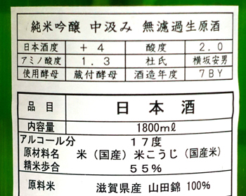 備 考 滋賀県産の山田錦100%使用