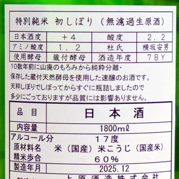 初しぼり 生原酒