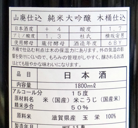 木桶仕込み、酵母無添加の山廃仕込み、木槽天秤(きぶねねんびん)搾り・・・と、一体どれだけ手間をかけるんだ?という、こだわり抜いたお酒です。