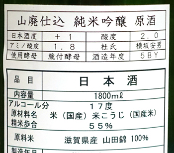 備 考 酵母無添加の山廃仕込