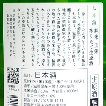 七本槍 純米 玉栄 搾りたて/ 七本鎗 冨田酒造