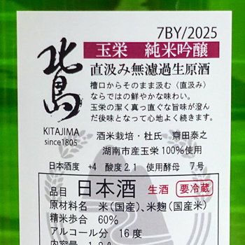 北島 玉栄 純米吟醸 直汲み 無濾過生原酒